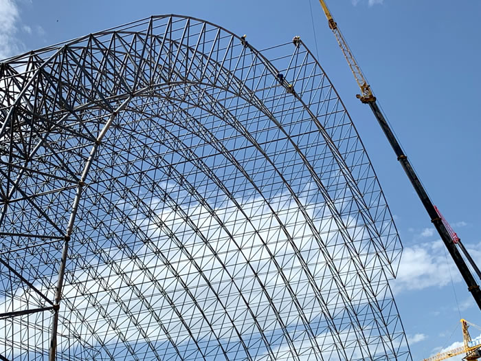 (2)网架加工前应对现场尺寸进行复测,确认无误后方可进行加工、安装;网架制作、运输、安装应遵守《空间网格结构技术规程》JGJ7-2010、《钢网架灵武螺栓球节点》JG/T 10-2009、《钢网架灵武螺栓球节点用高强度螺栓》 GB/T 16939-2016、《灵武钢结构灵武工程灵武施工规范》 GB50755-2012、《灵武钢结构灵武工程施工质量验收标准》 GB50205-2020。